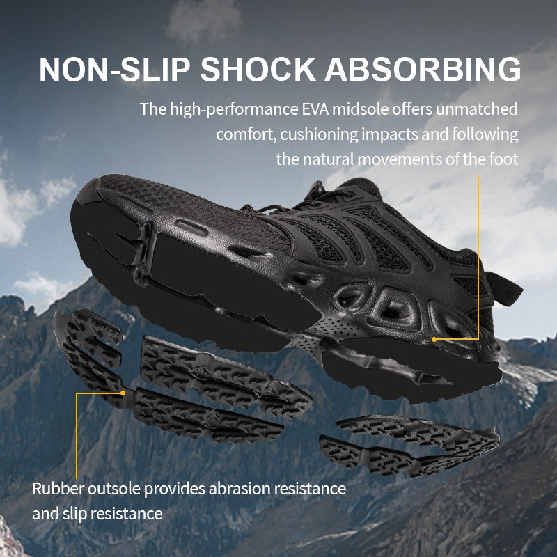 Leichter gehen, weiter wandern. Die stoßdämpfenden EVA-Trekkingschuhe bieten leichte Dämpfung und Aufprallschutz auf jedem Trail – so bleiben Ihre Füße vom ersten bis zum letzten Kilometer frisch. Senden Sie uns eine Anfrage für weitere Informationen.