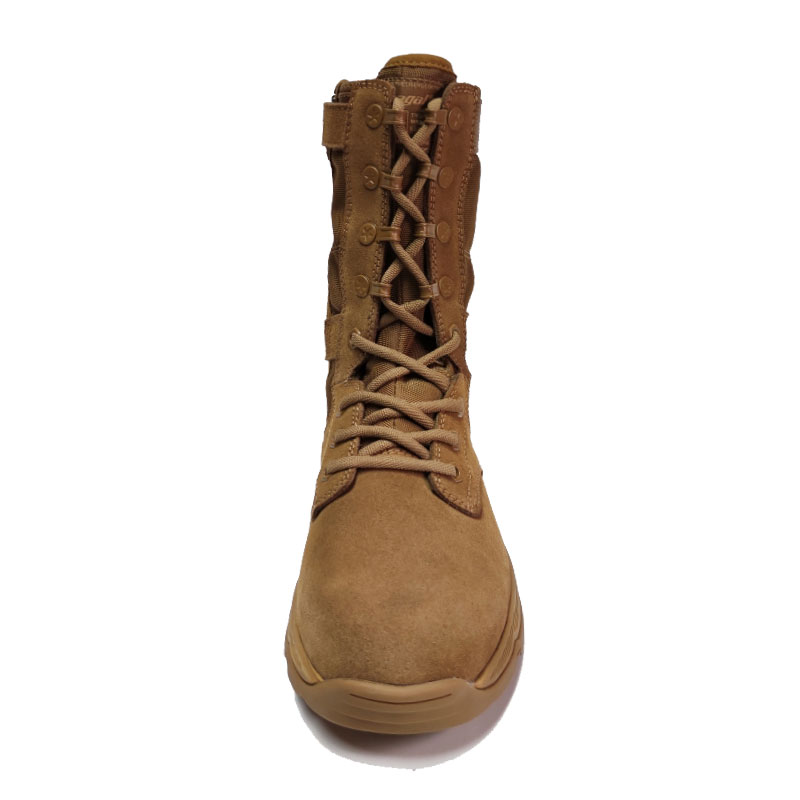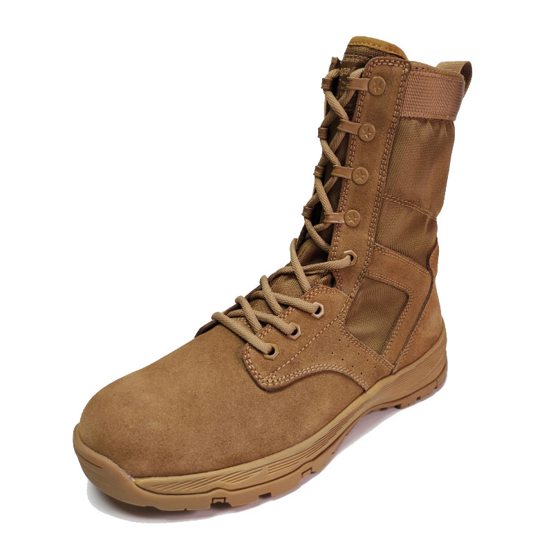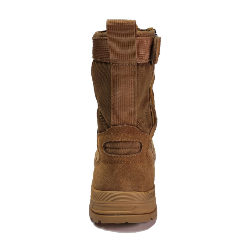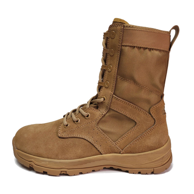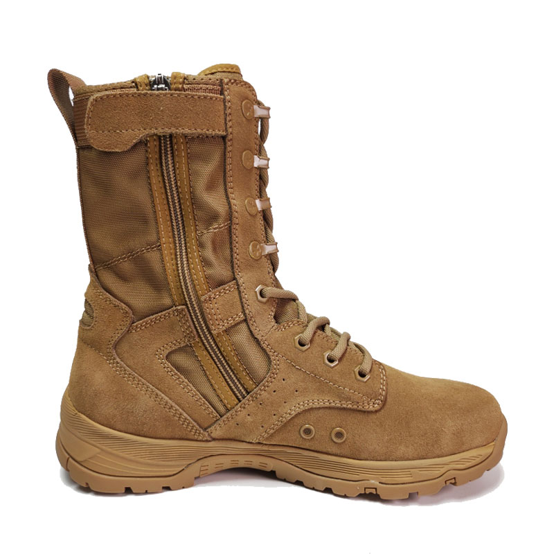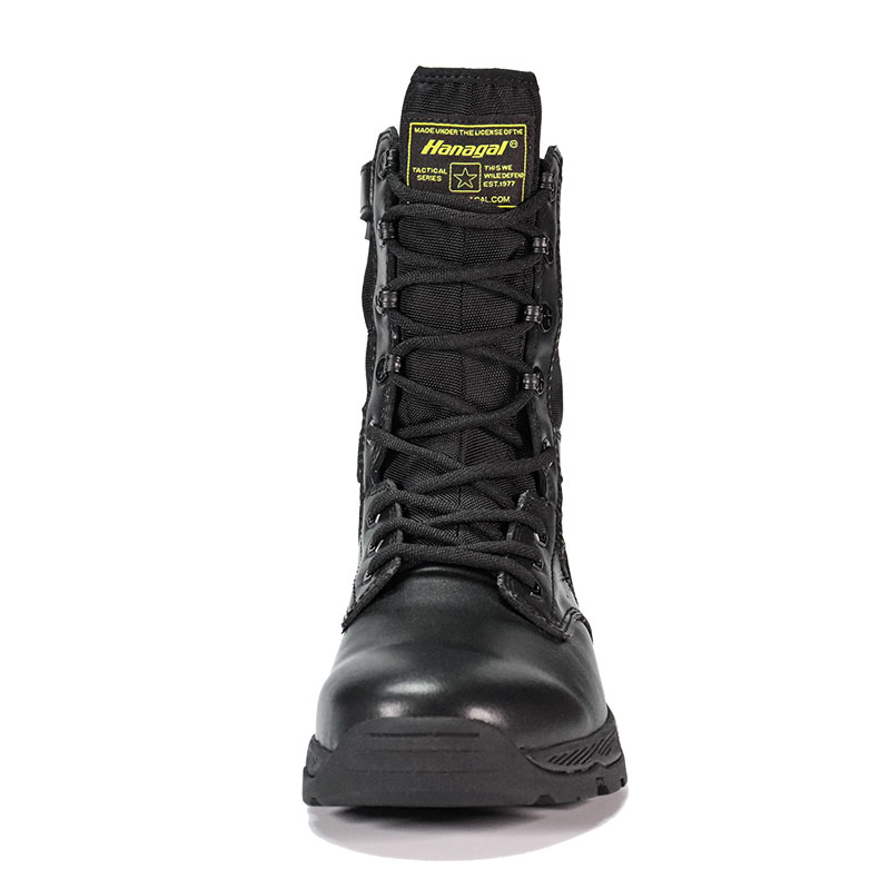 Die Polizeistiefel mit Vollgummi-Außensohle wurden für Militärangehörige und Outdoor-Enthusiasten entwickelt und bieten eine bequeme, umschließende Passform mit hervorragender Stabilität auf unebenem Gelände. Eine Zunge mit Zwickel hält Schmutz fern und bleibt zentriert, während das strapazierfähige Obermaterial aus Wildleder und Nylon rauen Bedingungen standhält. Der YKK-Reißverschluss erleichtert das An- und Ausziehen, sodass Sie sich auf die bevorstehende Mission konzentrieren können.