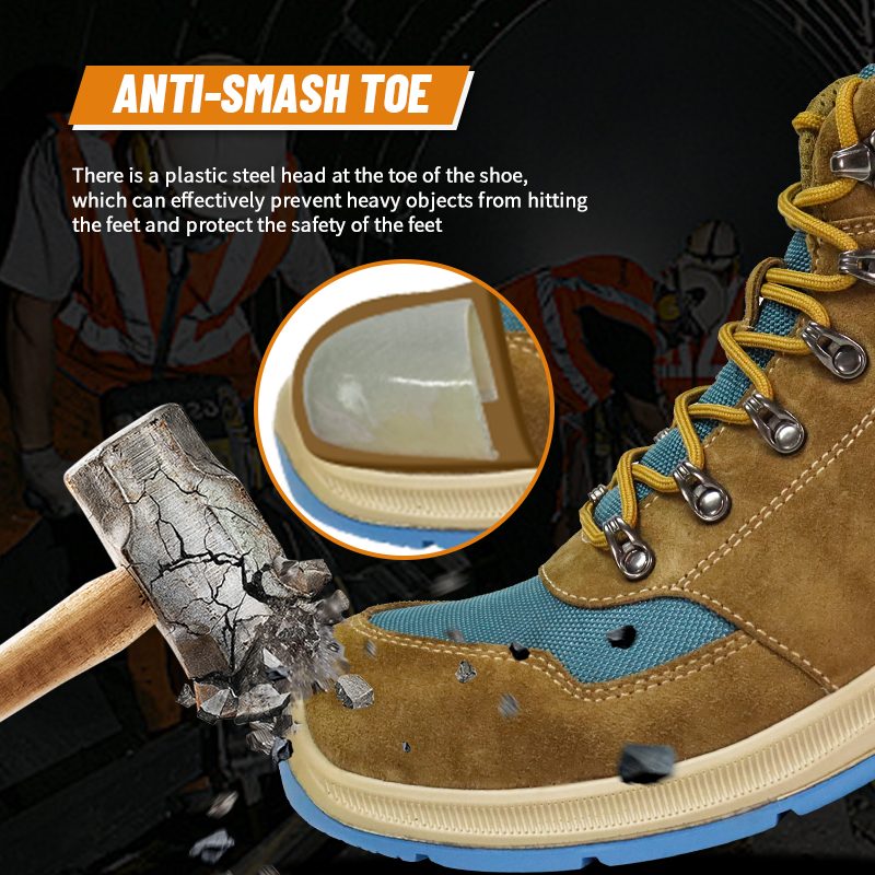 An der Spitze des Schuhs befindet sich ein Kopf aus Kunststoffstahl, der wirksam verhindern kann, dass schwere Gegenstände auf die Füße treffen, und die Sicherheit der Füße schützt.