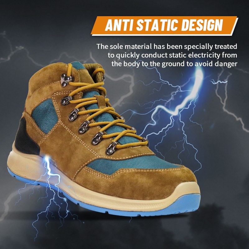 Das Sohlenmaterial wurde speziell behandelt, um statische Elektrizität schnell vom Körper zum Boden zu leiten und Gefahren zu vermeiden.