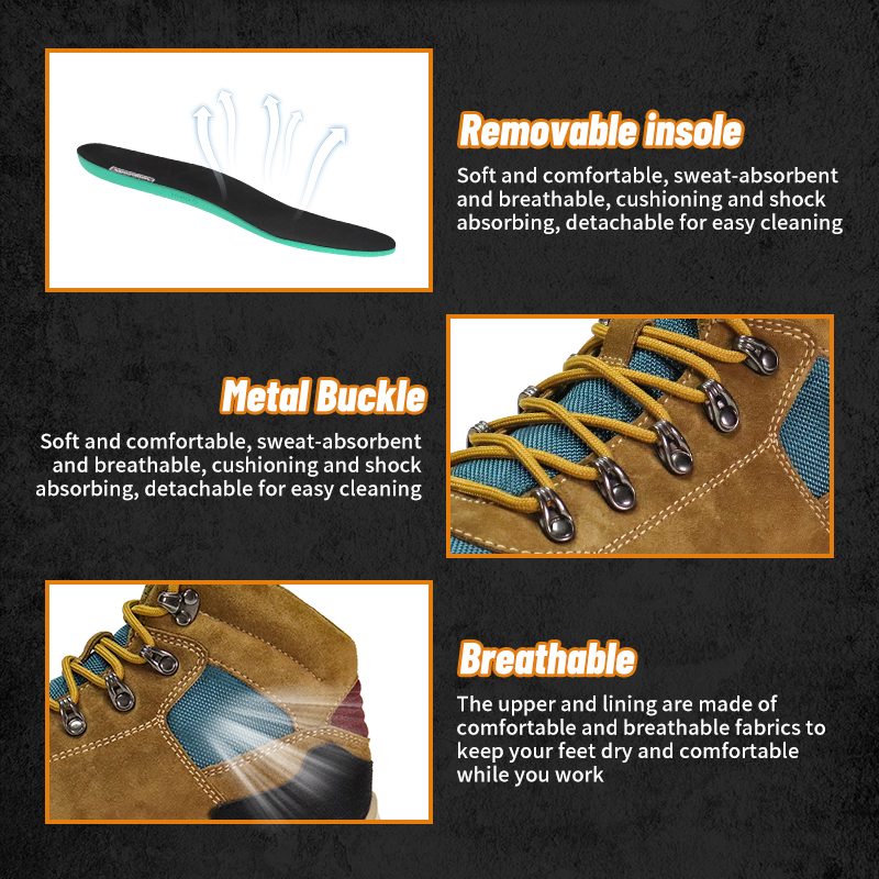 Das Obermaterial und das Futter bestehen aus bequemen und atmungsaktiven Stoffen, damit Ihre Füße beim Arbeiten trocken und bequem bleiben.