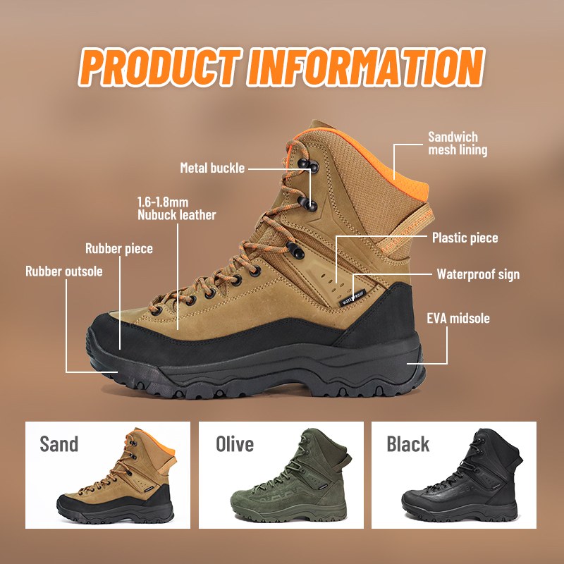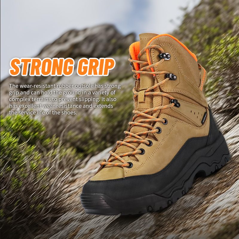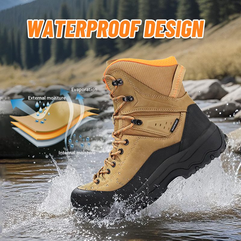 Rutschige Wege machen hier nicht Halt. Die robuste Außensohle haftet auf nassem Fels und losem Untergrund, während die wasserdichte Konstruktion die Füße auch bei Bächen und Regen trocken hält. Rutschfeste, wasserdichte Wanderschuhe mit starkem Griff – Vertrauen bei jedem Schritt. Senden Sie uns eine Anfrage für weitere Informationen.